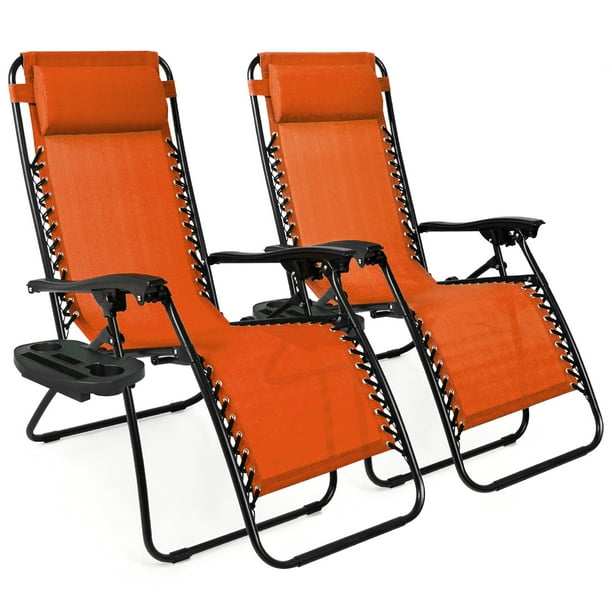 Best Choice Products Set Of 2 Adjustable Zero Gravity Lounge Chair Recliners For Patio W Cup Holders Burnt Orange Walmart Com Walmart Com